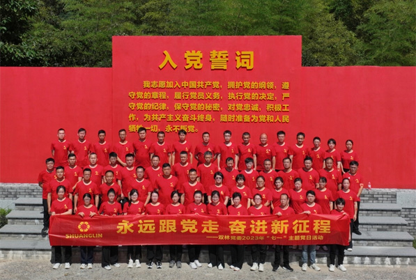重温一次入党誓词,坚定理想信念。面对鲜红的党旗,集团党委书记袁建国作为领誓人,带领今年5位新发展的预备党员及所有党员一起高举右手,再次庄严宣誓:“我志愿加入中国共产党……随时准备为党和人民牺牲一切,永不叛党。”铿锵恢宏的誓词,强烈震撼着在场的每一位党员,一字一句,神圣而豪迈,体现了党员同志们对中国共产党的无限忠诚。